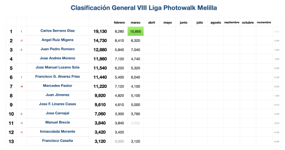 Una vez finalizada la II Liga fotográfica PhotowalkMelilla, ha resultado campeón de esta edicion nuestro socio y amigo Angel Ruiz Migens.